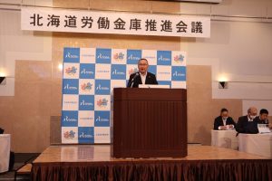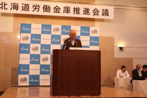 来賓として出席された北海道労金 杉山理事長からは、冒頭、10月1日より開始した11支店・出張所の昼休業の導入に際し、推進委員会・友の会をはじめ、地協・地区連合並びに構成組織の方々の理解と協力への感謝が申し上げられた後、『金庫の上期遂行状況について、退職金結集運動や轟ローン35周年キャンペーンの実施等により、預金・貸出金ともに目標を上回る結果となり、各会員・推進機構の皆さまのご尽力に感謝を申し上げたい。物価の高止まりが続く中、円安の進行や日銀の政策金利の利上げが予想されており、生活者への更なる影響が懸念されるが、福祉金融機関として良い商品・サービスを提供していくことが、会員・組合員に対する金庫の責任であると考える。引き続き、推進委員会・友の会の皆さんのお力添えをお願いしたい。』との挨拶を受けました。